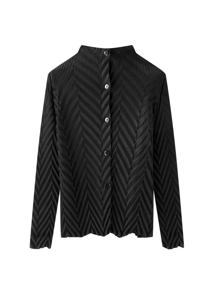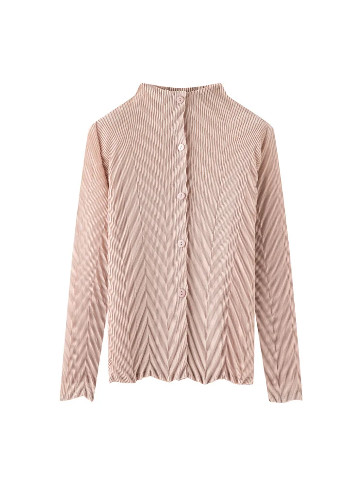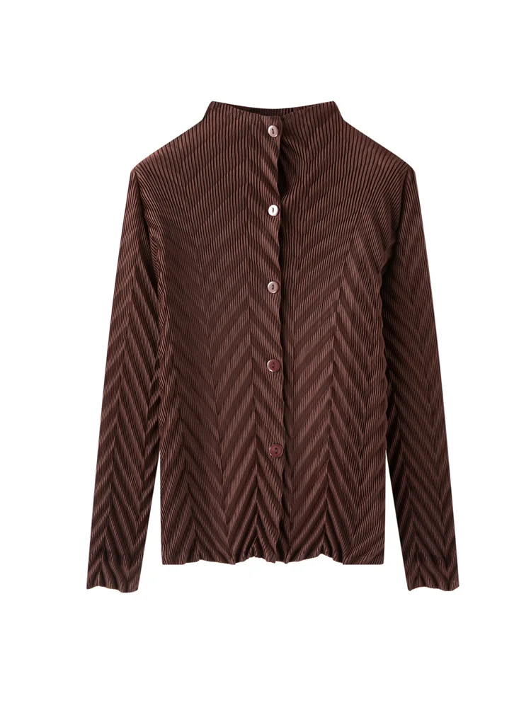Miyake High-end Vintage Vertical Collar Solid Color Wrinkled Long-sleeved T-shirt Women's Spring 2026 Commuter Poncho